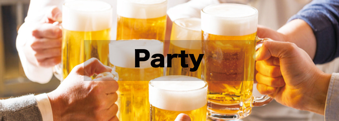PARTY PLAN 01 パーティープラン01 お料理10品 2時間飲み放題 お一人様 4,980円 またそのなかでいっしょになったたくさんのひとたち、ファゼーロとロザーロ、羊飼のミーロや、顔の赤いこどもたち、地主のテーモ、山猫博士のボーガント・デストゥパーゴなど、いまこの暗い巨きな石の建物のなかで考えていると、みんなむかし風のなつかしい青い幻燈のように思われます。